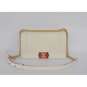2014 Boy Chanel Flap Shoulder Bag in Calf Leather A92094 White
