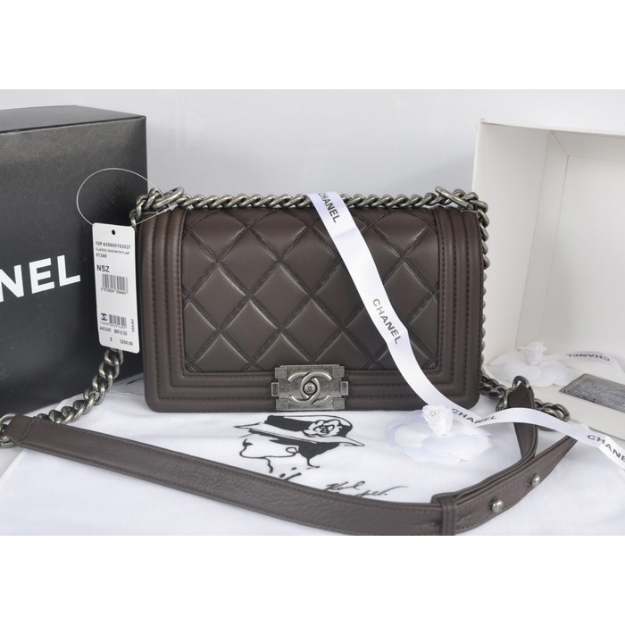 2014 Boy Chanel Flap Shoulder Bag in Original Calf Leather A91205 Coffee