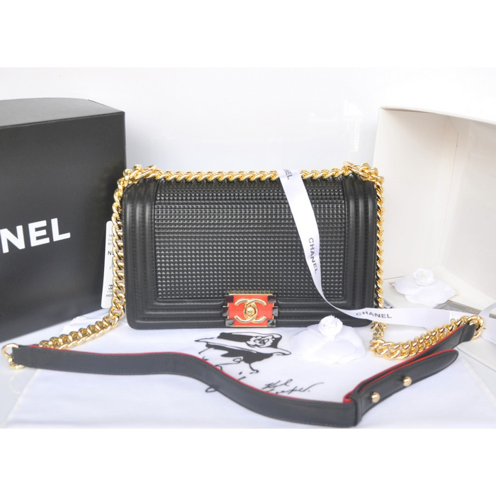 2014 Boy Chanel Flap Shoulder Bag in Original Calf Leather A92094 Black