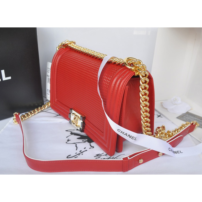 2014 Boy Chanel Flap Shoulder Bag in Original Calf Leather A92094 Red