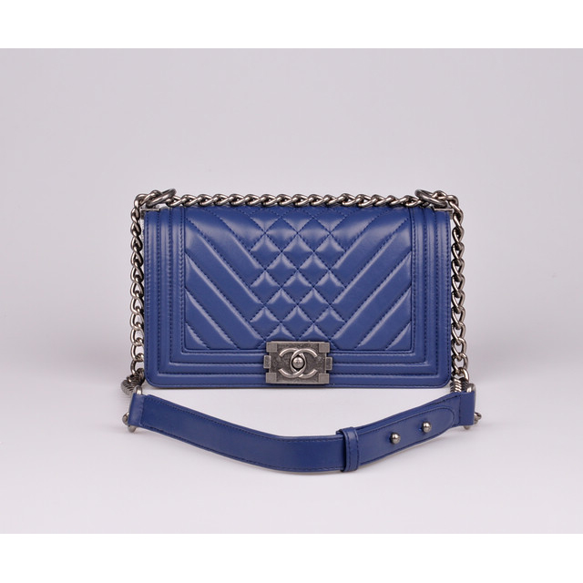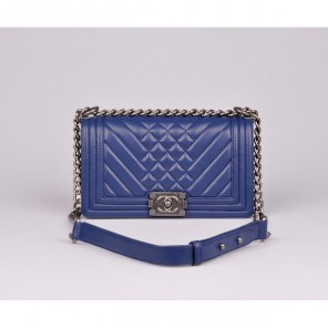 2014 Boy Chanel Flap Shoulder Bag in Sheepskin Leather A90191 Blue