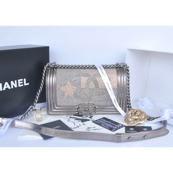 2014 Boy Chanel Star Flap Shoulder Bag Original Leather A67086 Grey