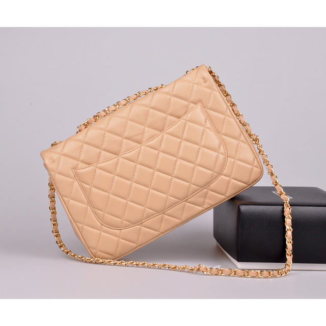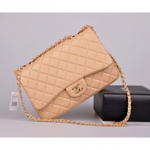 2014 Chanel A28600 Original Leather Classic Flap Bag in Apricot with Gold