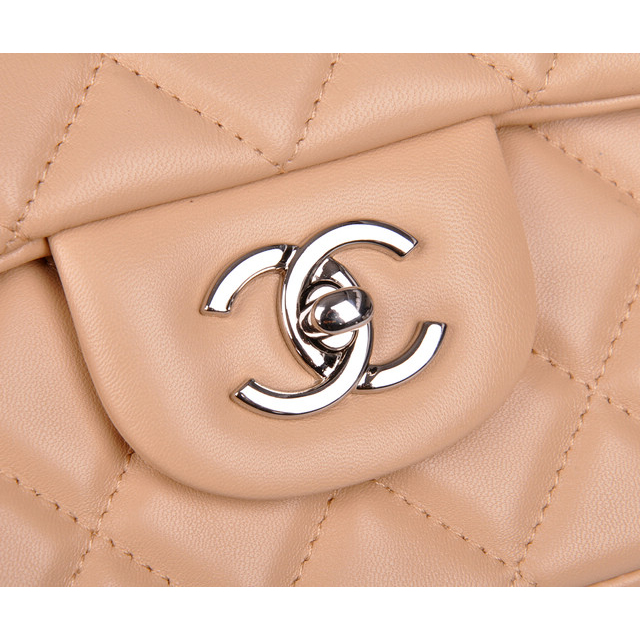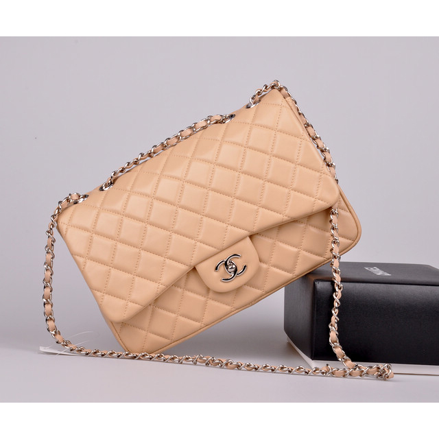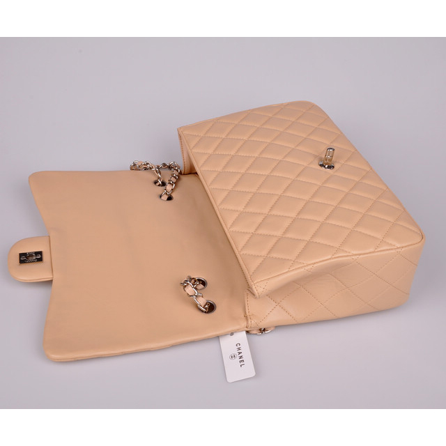 2014 Chanel A28600 Original Leather Classic Flap Bag in Apricot with Silver
