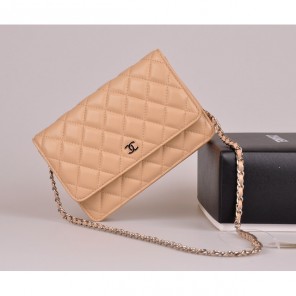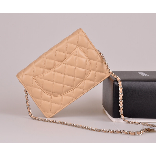 2014 Chanel A33814 Original Sheepskin Leather Flap Bag in Apricot with Silver