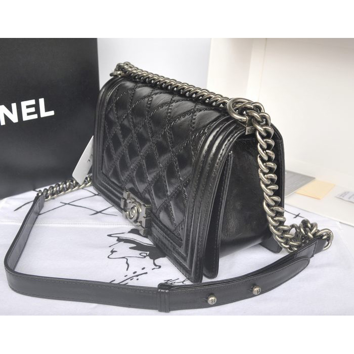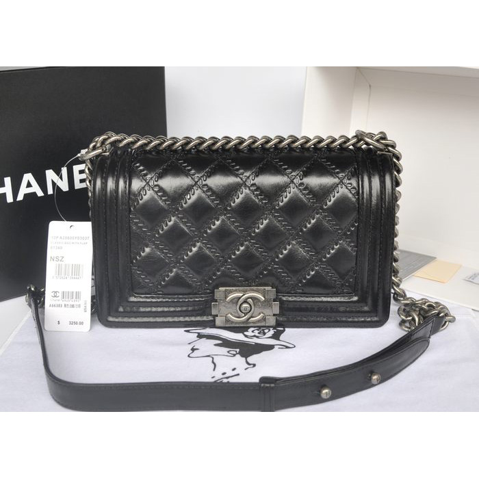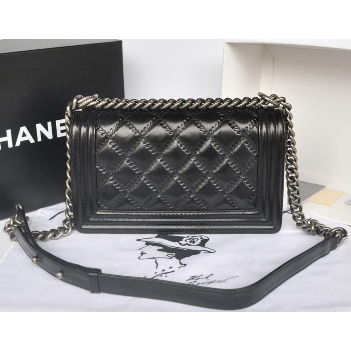 2014 Chanel Boy Flap Shoulder Bag Original Bright Leather A66383 Black