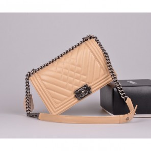 2014 Chanel Boy Flap Shoulder Bag in Original Sheepskin Leather A90191 Apricot