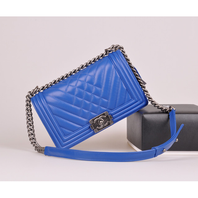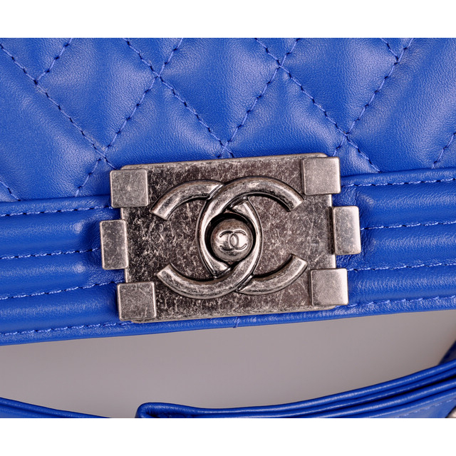 2014 Chanel Boy Flap Shoulder Bag in Original Sheepskin Leather A90191 Blue