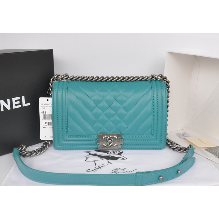 2014 Chanel Boy Flap Shoulder Bag in Original Sheepskin Leather A90191 Green