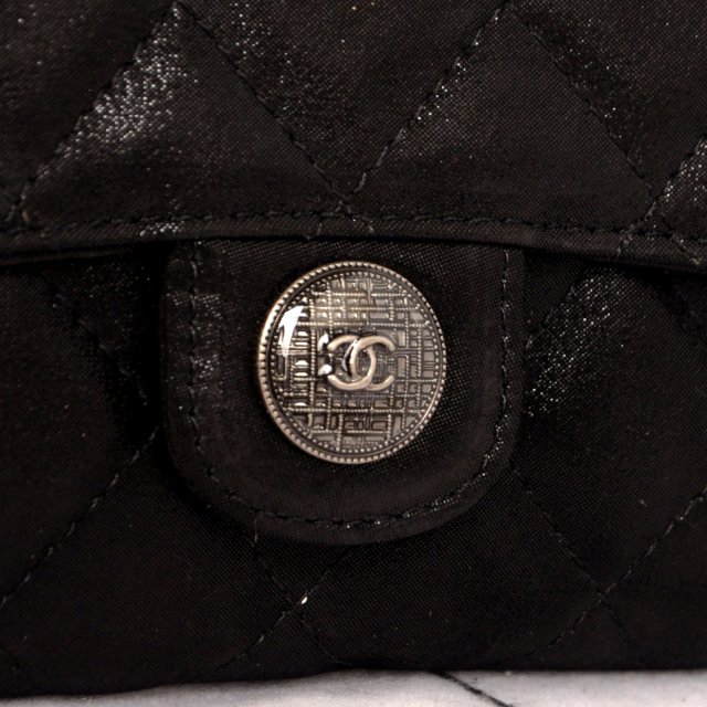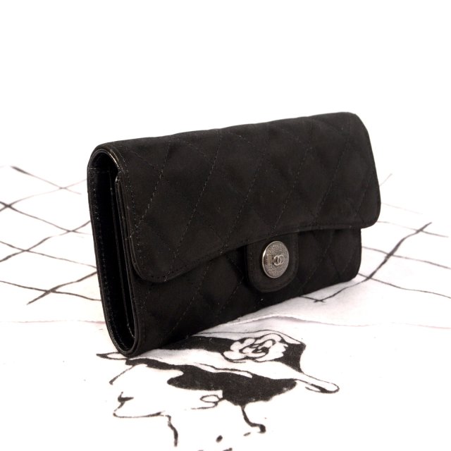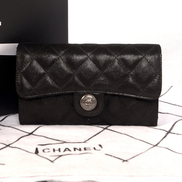 2014 Chanel C006 Black Original Leather Long Tri-Fold Wallet with Silver