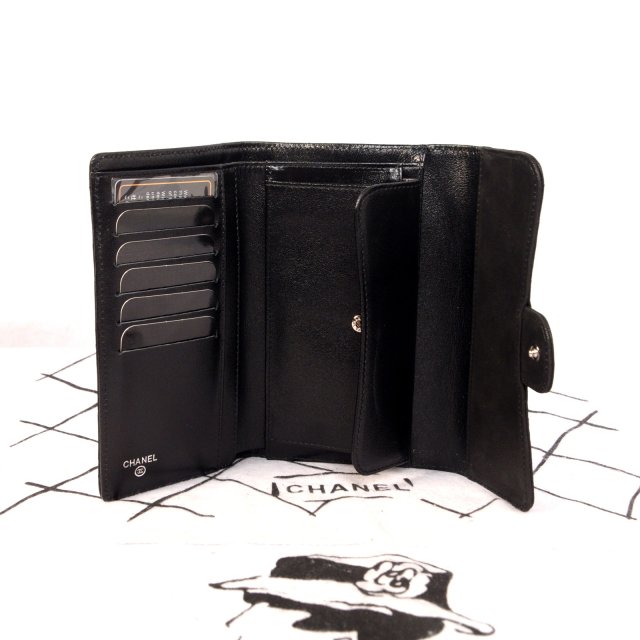 Chanel Tri-Fold Wallet Come with serial numbers, Chanel authenticity card, Chanel dust bag, Chanel Box and Chanel care booklet.