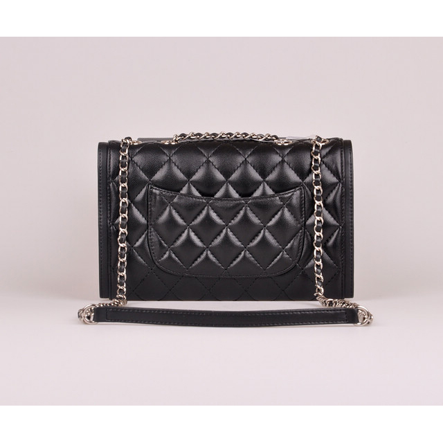 2014 Chanel Classic Flap Bag Black Sheepskin Leather A25280 Silver