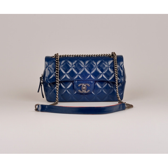 2014 Chanel Classic Flap Bag Iridescent Leather A25801 Blue