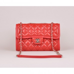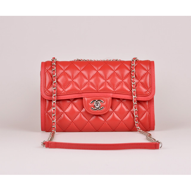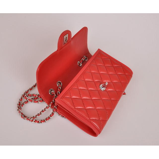 2014 Chanel Classic Flap Bag Red Sheepskin Leather A25280 Silver