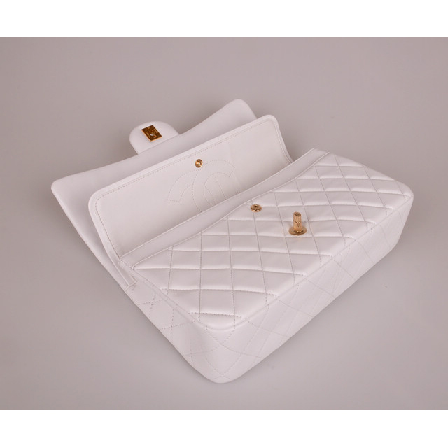 2014 Chanel Classic Flap Bag White Original Leather 1113 Gold