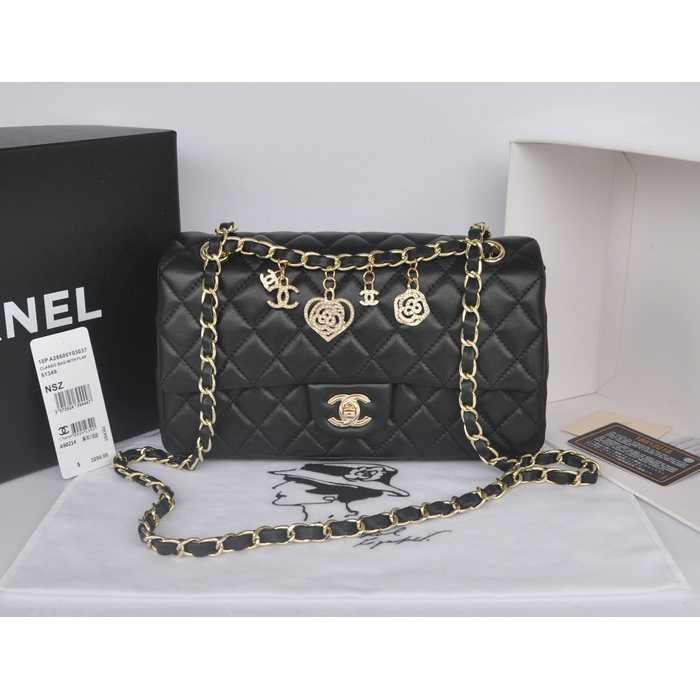 2014 Chanel Classic Flap Bags Black Original Sheepskin Leather A90214 Gold