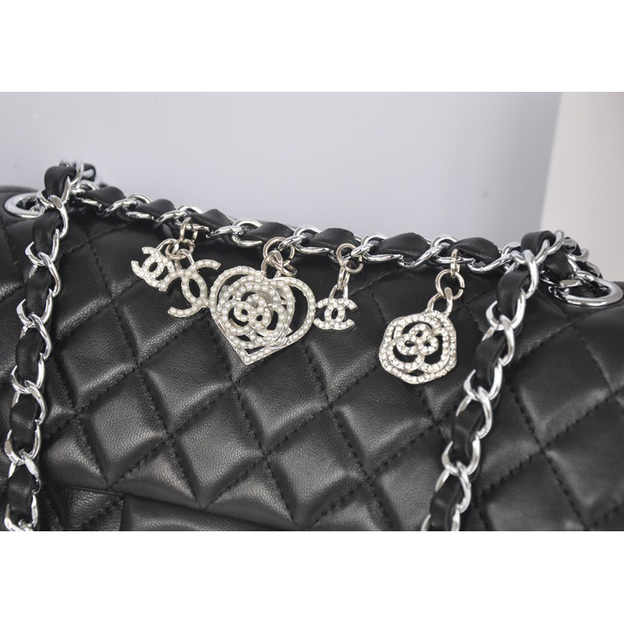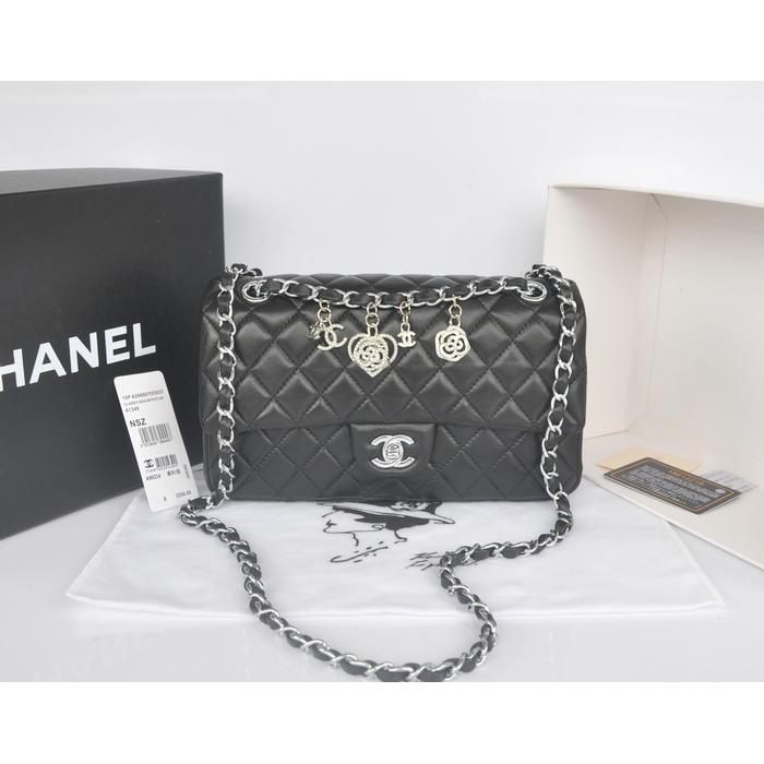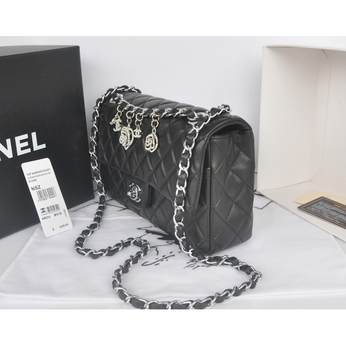 2014 Chanel Classic Flap Bags Black Original Sheepskin Leather A90214 Silver