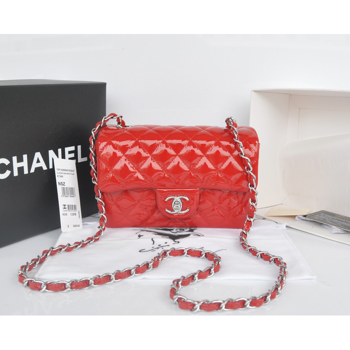 2014 Chanel Classic Flap Bags Original Patent Leather A1116 Red with Silver