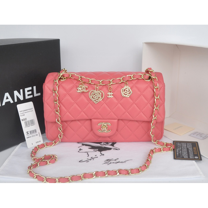 2014 Chanel Classic Flap Bags Pink Original Sheepskin Leather A90214 Gold