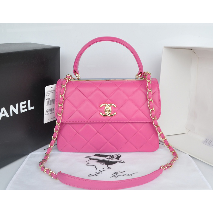 2014 Chanel Classic Top Handle Bag Original Sheepskin Leather A92236 Rose