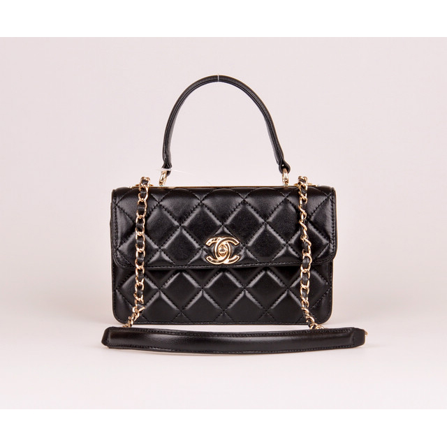2014 Chanel Classic Top Handle Bag Sheepskin Leather A92236 Black