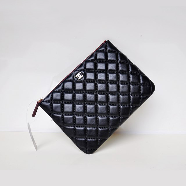 2014 Chanel Clutch Bag Black Sheepskin Leather A67781 Gold