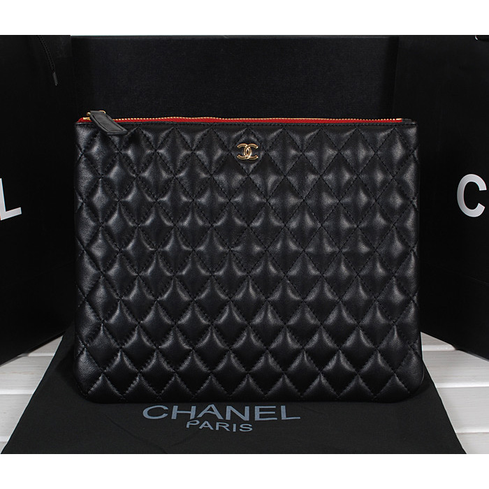 2014 Chanel Clutch Bag Original Sheepskin Leather A67088 Black with Gold