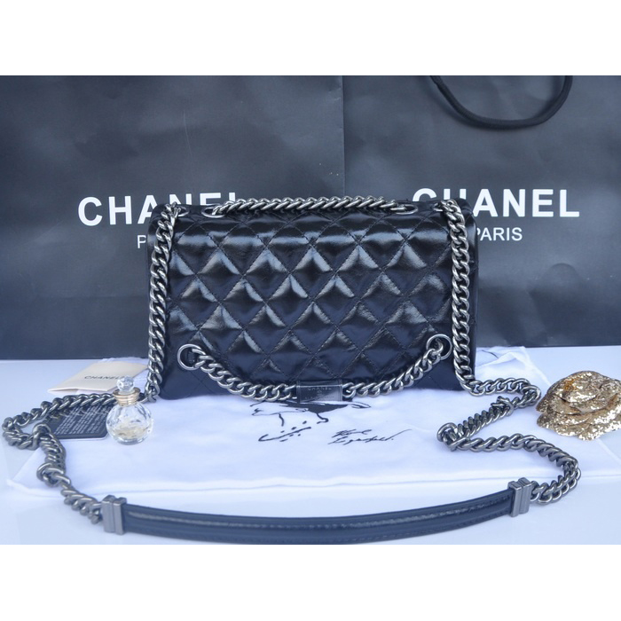 2014 Chanel Iridescent Leather Shoulder Bag A92522 Black