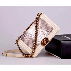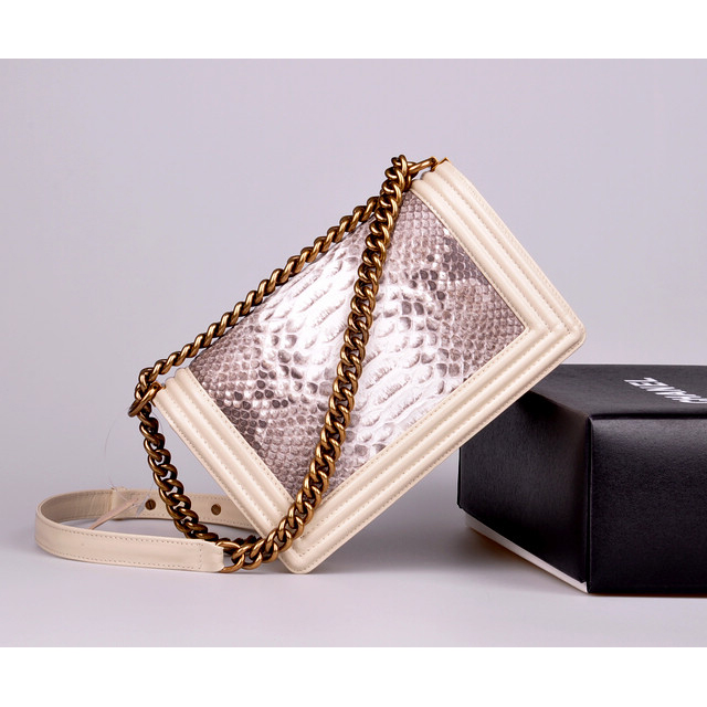 2014 Chanel LE boy Flap Shoulder Bag Real Python Leather A67086 Beige
