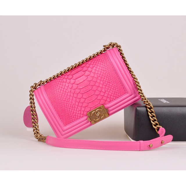 2014 Chanel LE boy Flap Shoulder Bag Real Python Leather A67086 Rose