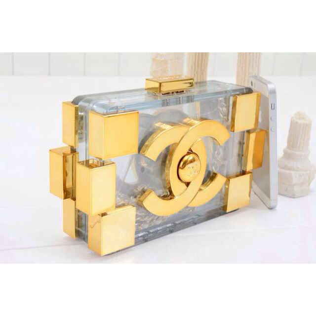 2014 Chanel Lego Clutch A37013 Transparent&Gold