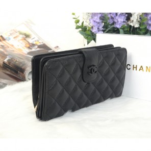 2014 Chanel Matelasse Bi-Fold Wallet Sheepskin Leather C0016 in Black