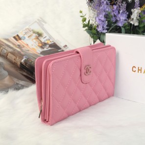 2014 Chanel Matelasse Bi-Fold Wallet Sheepskin Leather C0016 in Pink