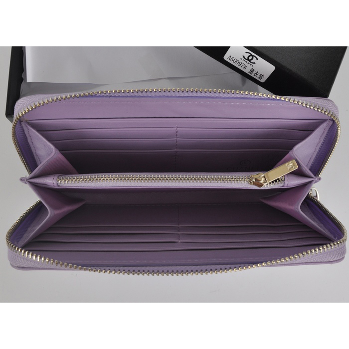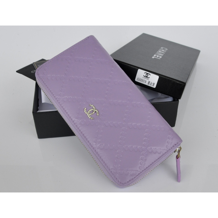 2014 Chanel Matelasse Zip Around Wallet Embossed Leather A50097 Lavender