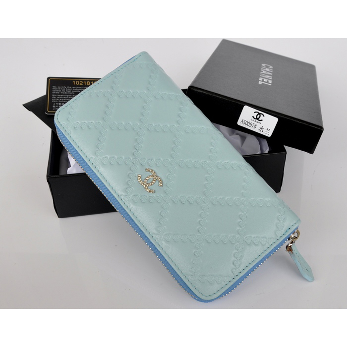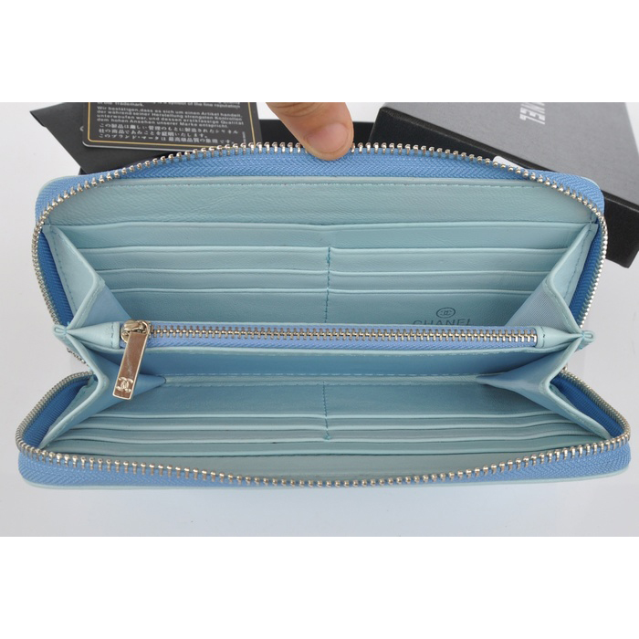 2014 Chanel Matelasse Zip Around Wallet Embossed Leather A50097 Light blue