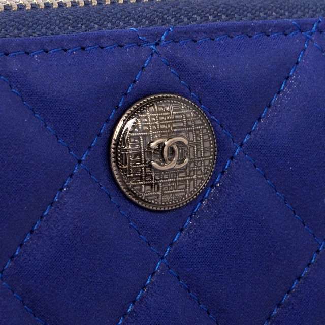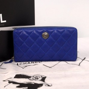 2014 Chanel Matelasse Zip Around Wallet Original Glazed Crackled Leather C009 Blue