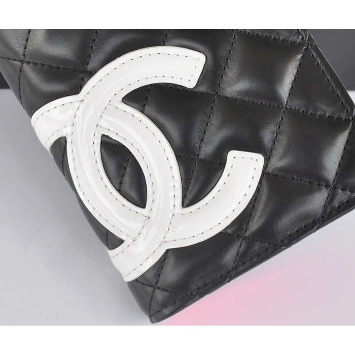 2014 Chanel Original Leather Black CC Logo Bi-Fold Wallet A26717 Black&White