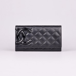 2014 Chanel Original Sheepskin Leather Black CC Logo Tri-Fold Wallet A50079 Black