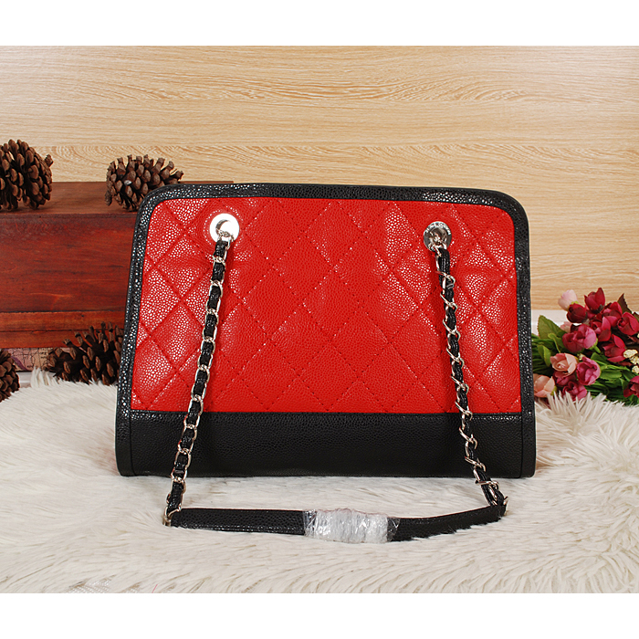 2014 Chanel Shopping Bag in Caviar leather A6869 Red&Black