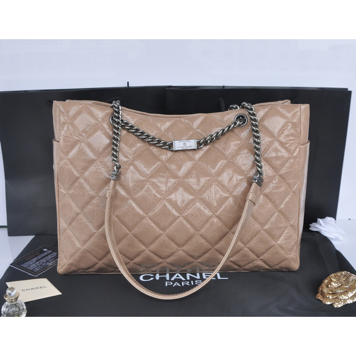 2014 Chanel Shoulder Bag Iridescent Leather A92525 Apricot