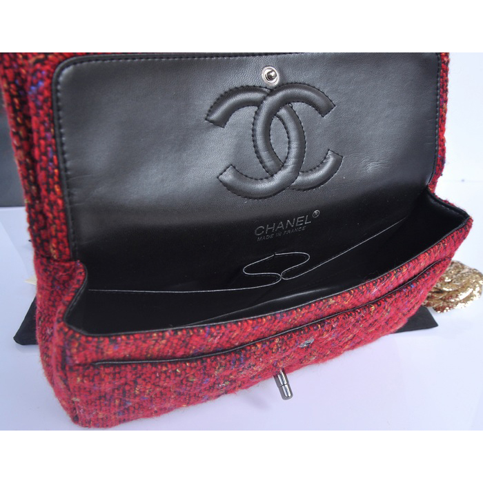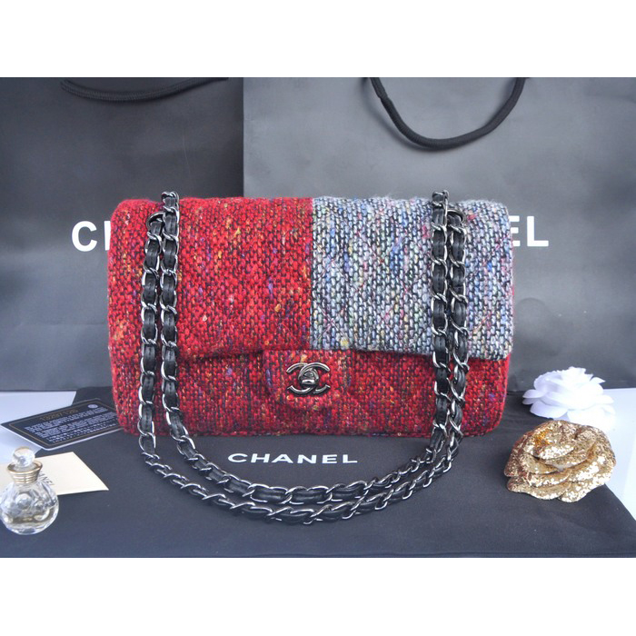 2014 Chanel Tweed Classic Flap Bag 1112 Grey&Red