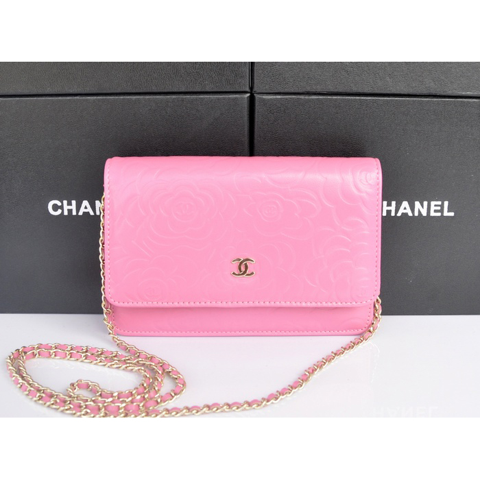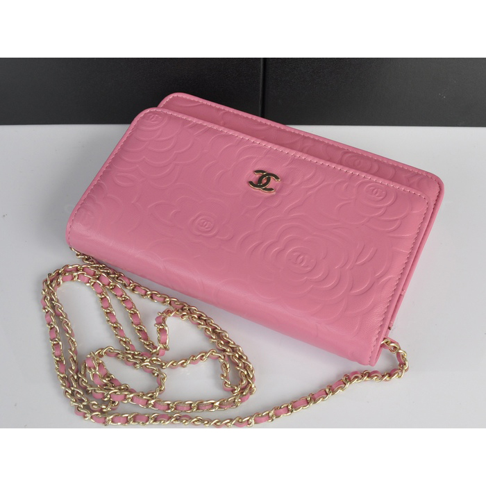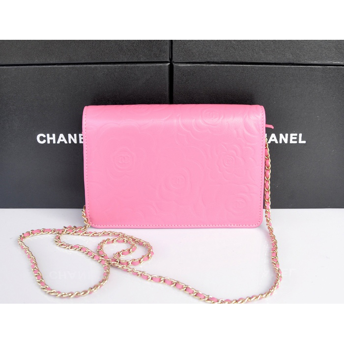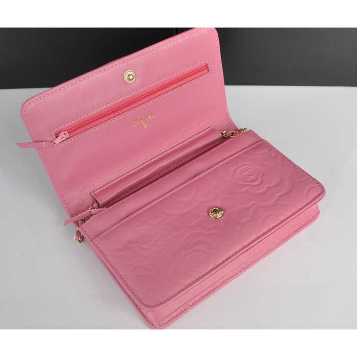 2014 Chanel WOC mini bags Original Camellia Leather A93301 Pink