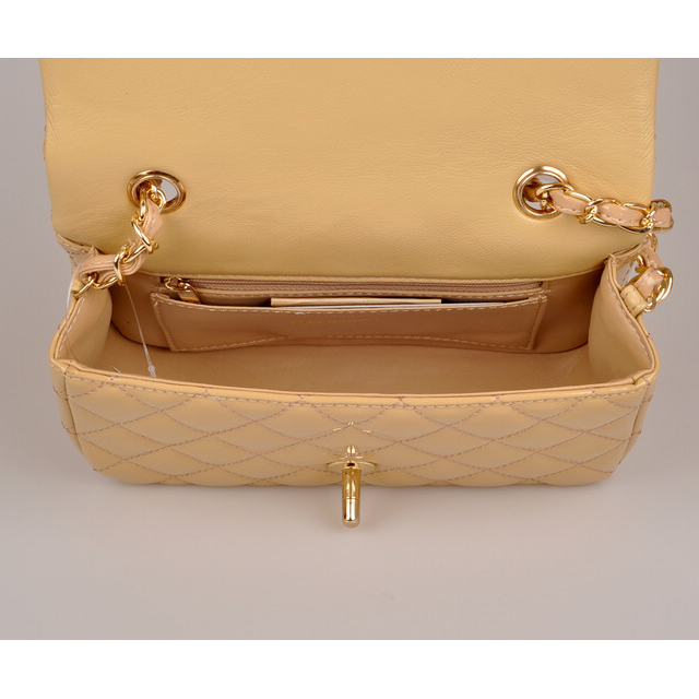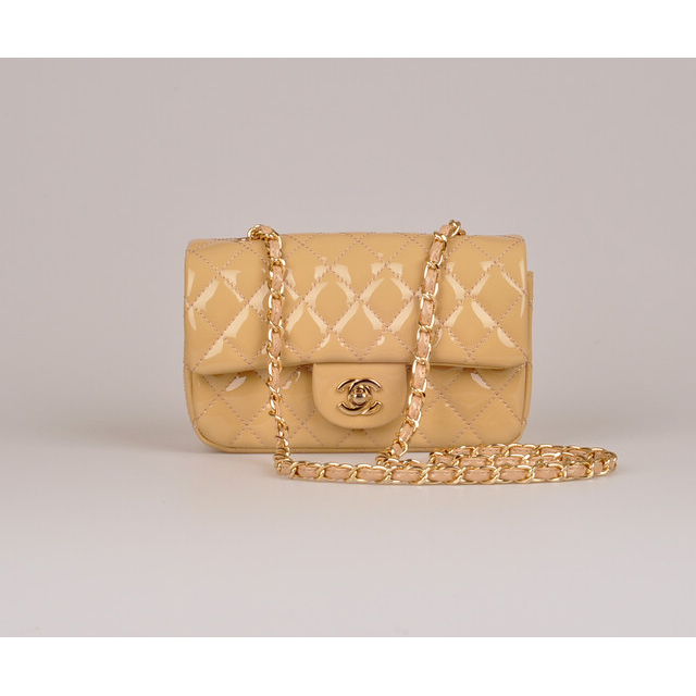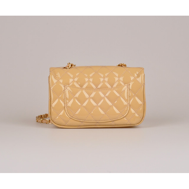 2014 Chanel mini Classic Flap Bag Apricot Patent Leather 1117 Gold