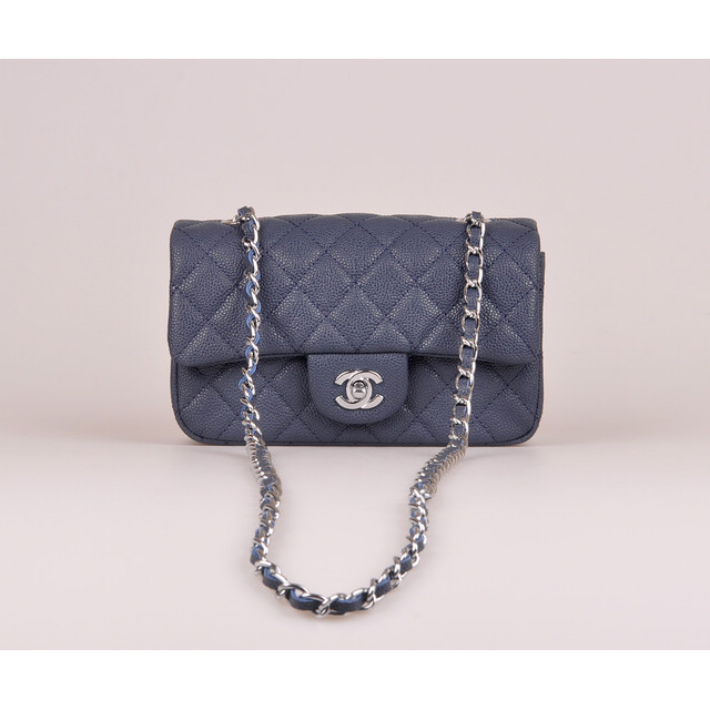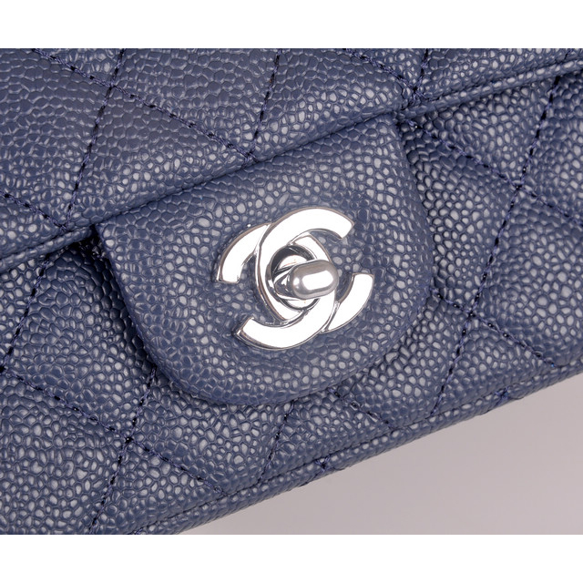 2014 Chanel mini Classic Flap Bag Blue Caviar leather 1117 Gold