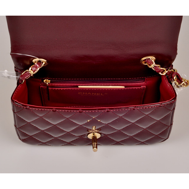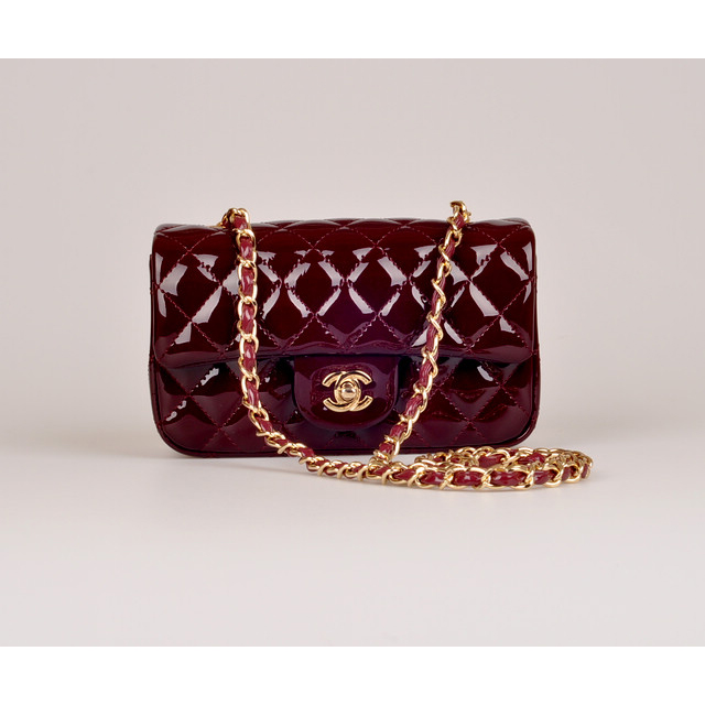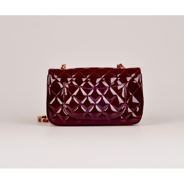 2014 Chanel mini Classic Flap Bag Maroon Patent Leather 1117 Gold