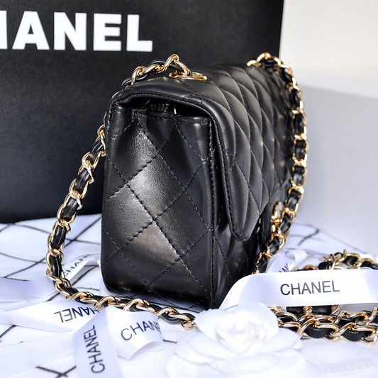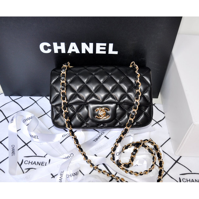 2014 Chanel mini Classic Flap Bag Original Black Sheekskin leather 1117 Gold