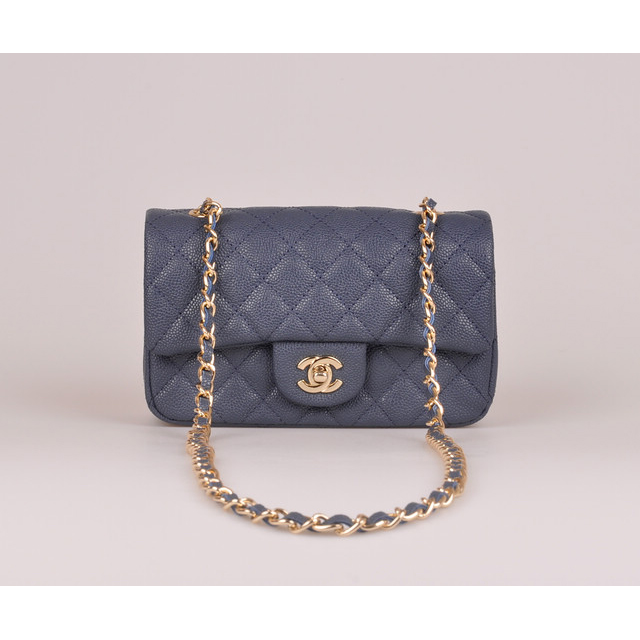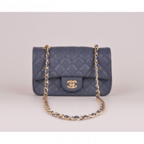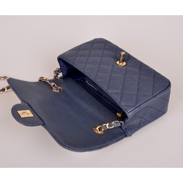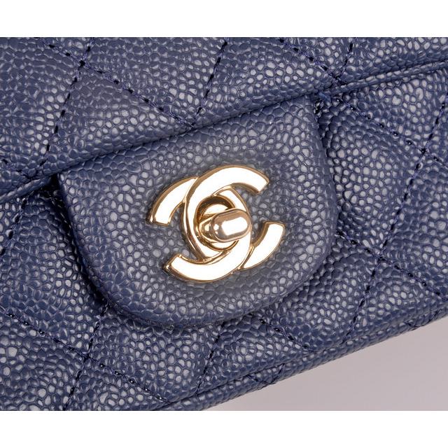 2014 Chanel mini Classic Flap Bag Original Blue Caviar leather 1117 Gold