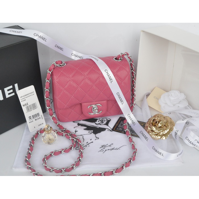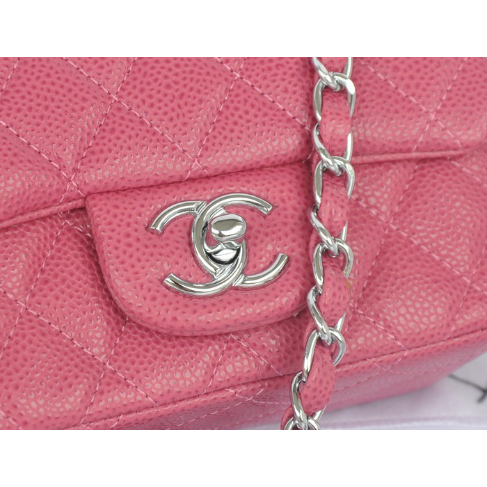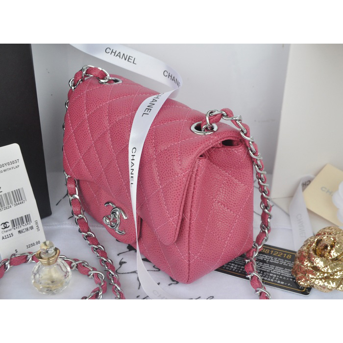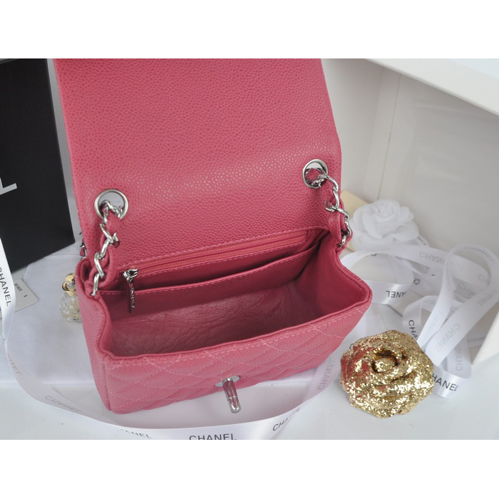 2014 Chanel mini Classic Flap Bag Rose Original Caviar leather A1115 Silver
