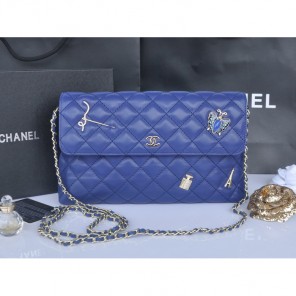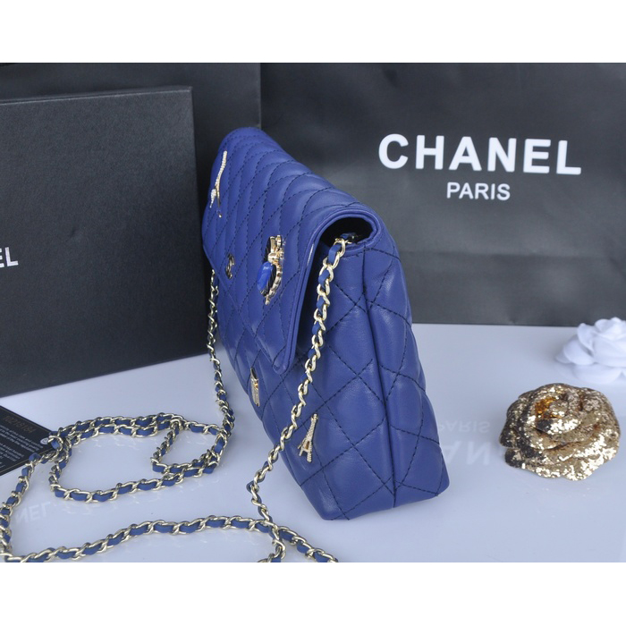2014 Chanel plaid butterfly flap bag A668389 in Blue