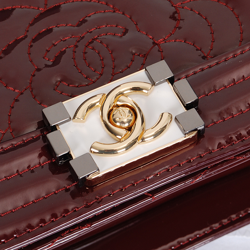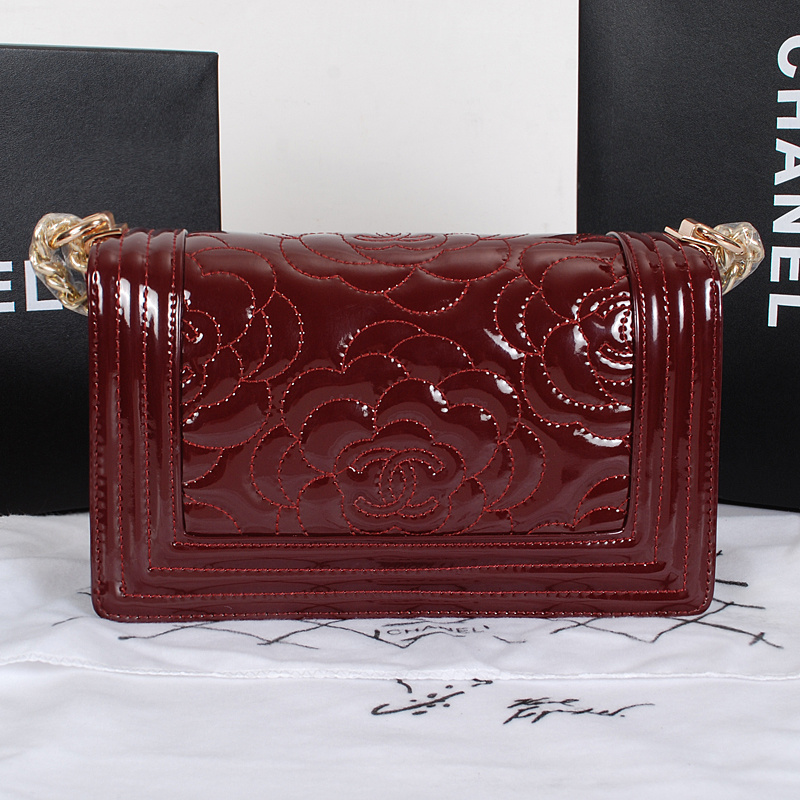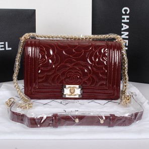 2014 Le Boy Chanel Flap Shoulder Bag Original Patent Leather A68915 Claret